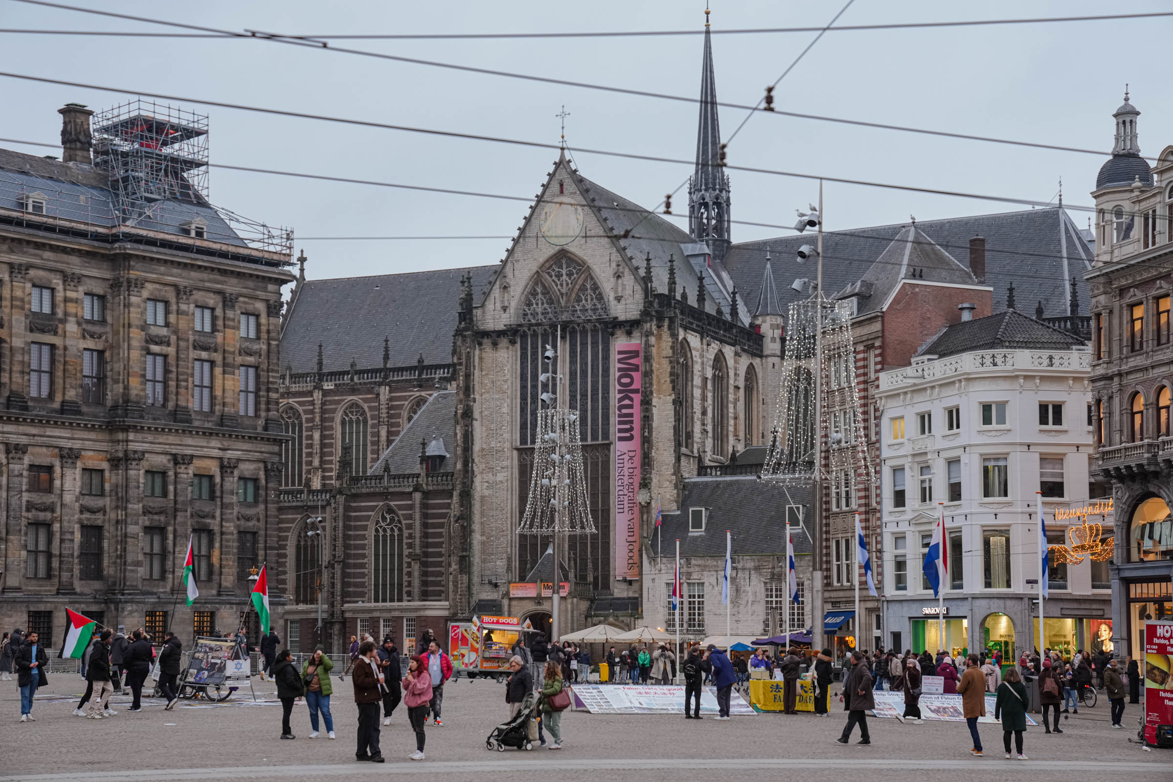 Dam Square is the central gathering place of the city and the place where Amsterdam began its story. On the square is the Royal Palace from the seventeenth century, which is still used for official ceremonies and receptions, even though the royal family lives in The Hague. Next to the palace stands the New Church, a Gothic building that today serves as an exhibition space, and there is also the National Monument erected in 1956 in memory of the victims of the Second World War.