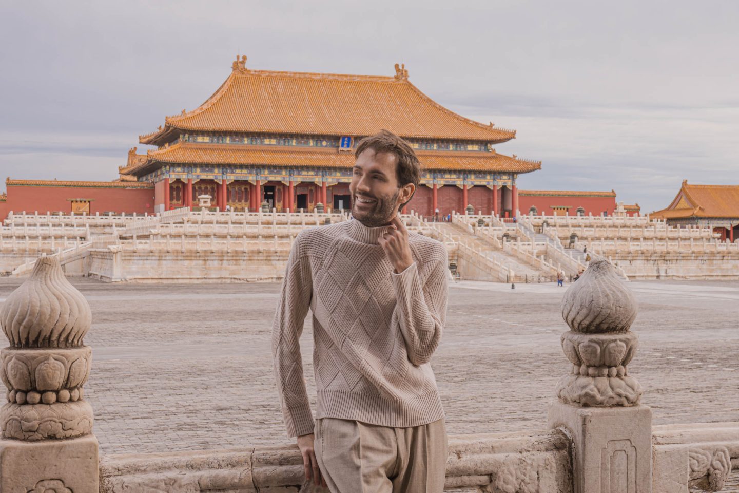 Dragi moji ljubitelji mode, dobrodošli u još jednu modnu avanturu na Mr.M blogu! Septembarsko sunce provlači se kroz moćne krošnje starih kineskih kedrova dok prolazim kroz Kapiju Vrhovne Harmonije, započinjući još jedno modno i kulturno poglavlje mog putovanja kroz Peking, sa rukama u džepovima Loro Piana pantalona, osećajući kako merino vuna ALPHA STUDIO rolke savršeno reguliše temperaturu mog tela. Peking u jesen nudi onu retku klimatsku ravnotežu kada luksuzna vuna postaje ne samo estetski, već i funkcionalni izbor, sa jedne strane dovoljno topla za hladna jutra, a opet dovoljno dopušta koži da diše tokom prepodnevne šetnje kroz carski kompleks Zabranjenog Grada u srcu Pekinga. Ova kombinacija u potpunoj monohromatskoj bež paleti, svaki komad je pažljivo biran da odražava filozofiju koju delim sa Svetskom turističkom organizacijom – UN Tourism i Mandarin Oriental Qianmen hotelom, kao što su autentičnost, kvalitet bez kompromisa i poštovanje prema tradiciji koja se susreće sa savremenom elegancijom.