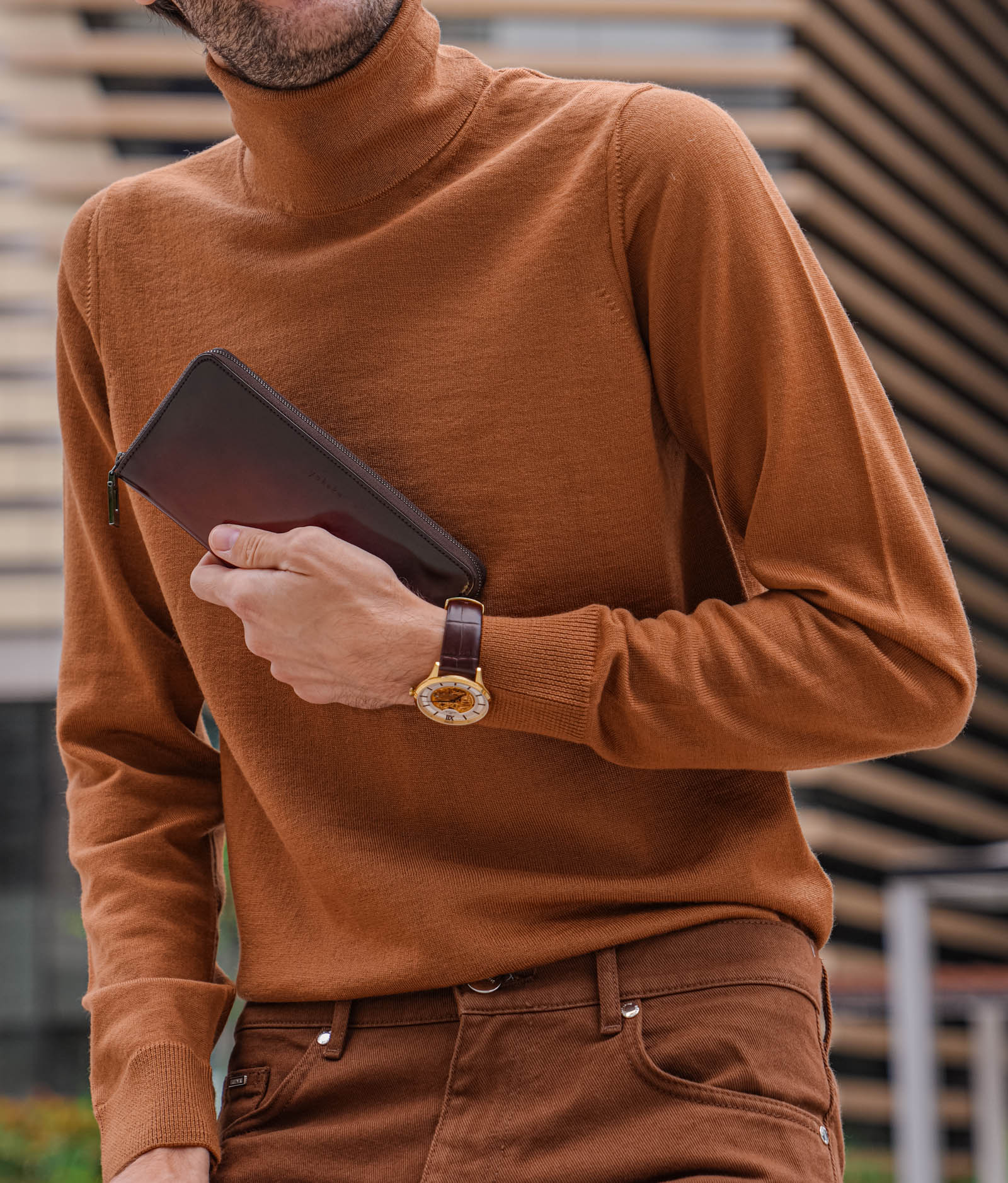 Alpha Studio rolka iz Firence, Bottega Veneta farmerke iz Veneta, Yuhaku novčanik iz tokijskih radionica, Appella sat iz švajcarskih manufaktura i Carlos Santos patike iz portugalskog Sao Žoao da Madeire, svaki od tih komada nosi u sebi priču o porodici, tradiciji i posvećenosti. I svaki od njih, na svoj način, deli istu filozofiju: da pravi luksuz nije u onome što se vidi spolja, već u onome što se oseća.