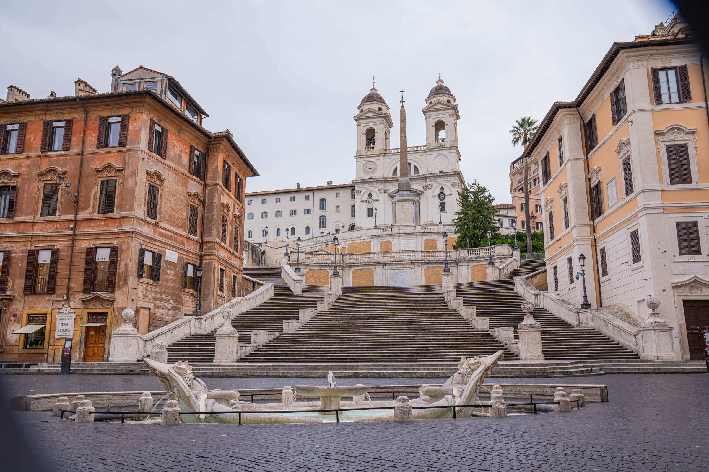 Na vrhu stepenica, ispred crkve Trinita dei Monti, stoji egipatski obelisk Salarija koji datira iz drugog veka nove ere. Crkva sama, sa svojim karakterističnim dvema zvonara kupolama, izgrađena je u šesnaestom veku na inicijativu francuskog kralja Šarla VIII. Upravo ta francuska veza objašnjava zašto se trg u podnožju zove Piazza di Spagna, ime potiče od nekadašnjeg španskog poslanstva koje se nalazilo na tom mestu.
