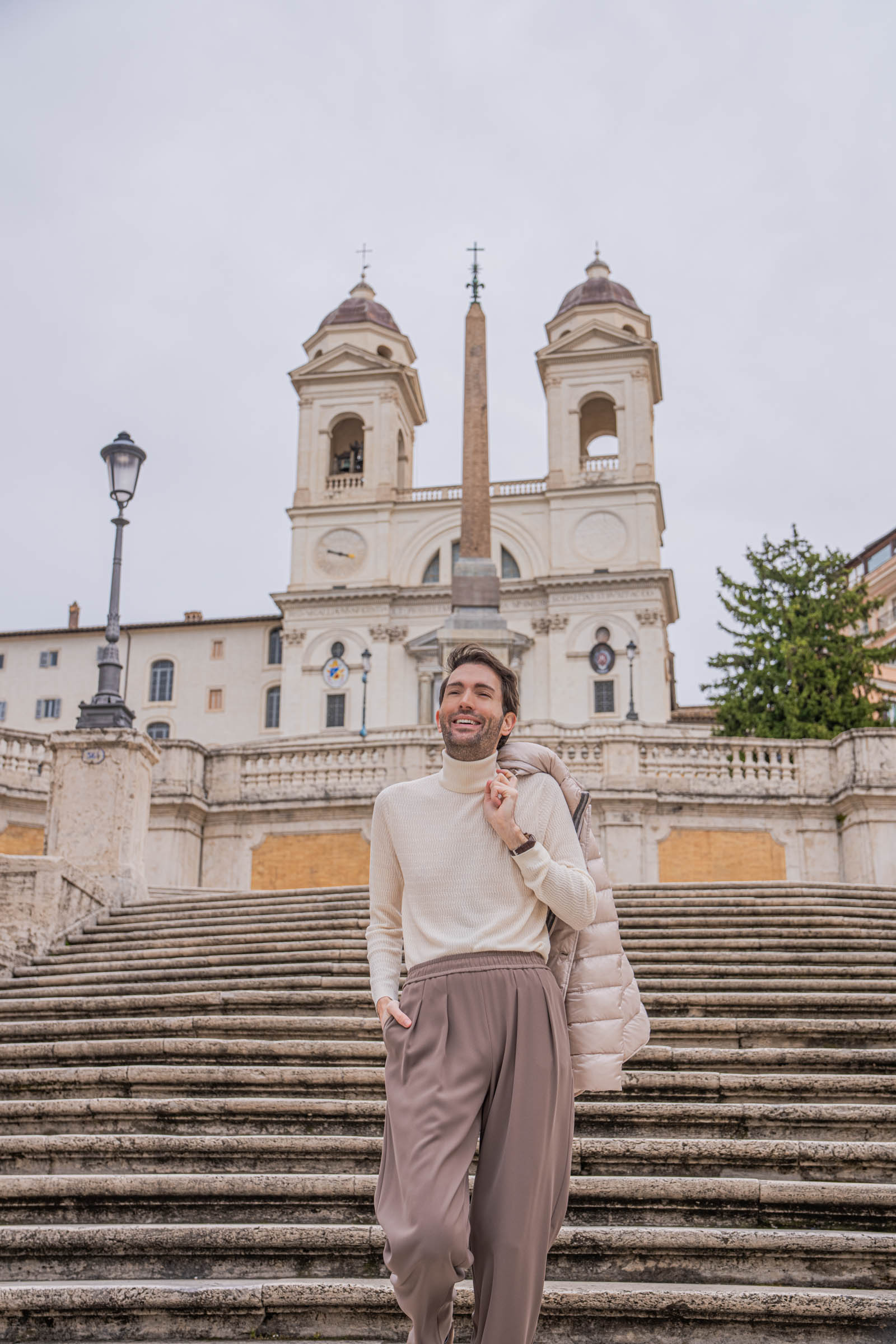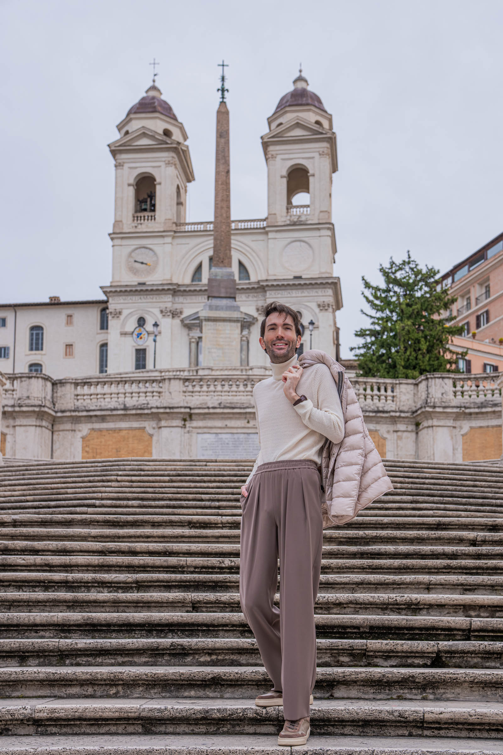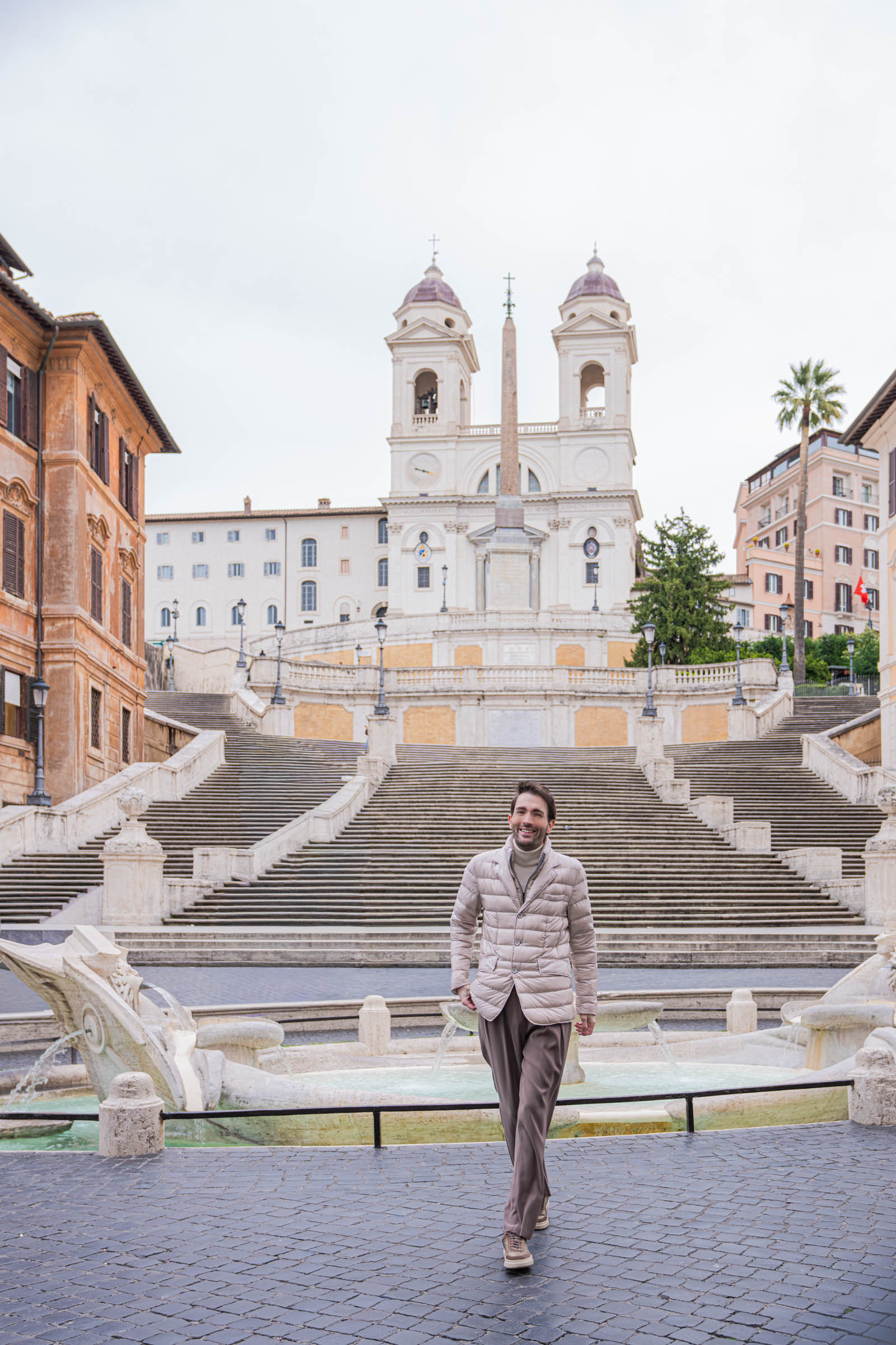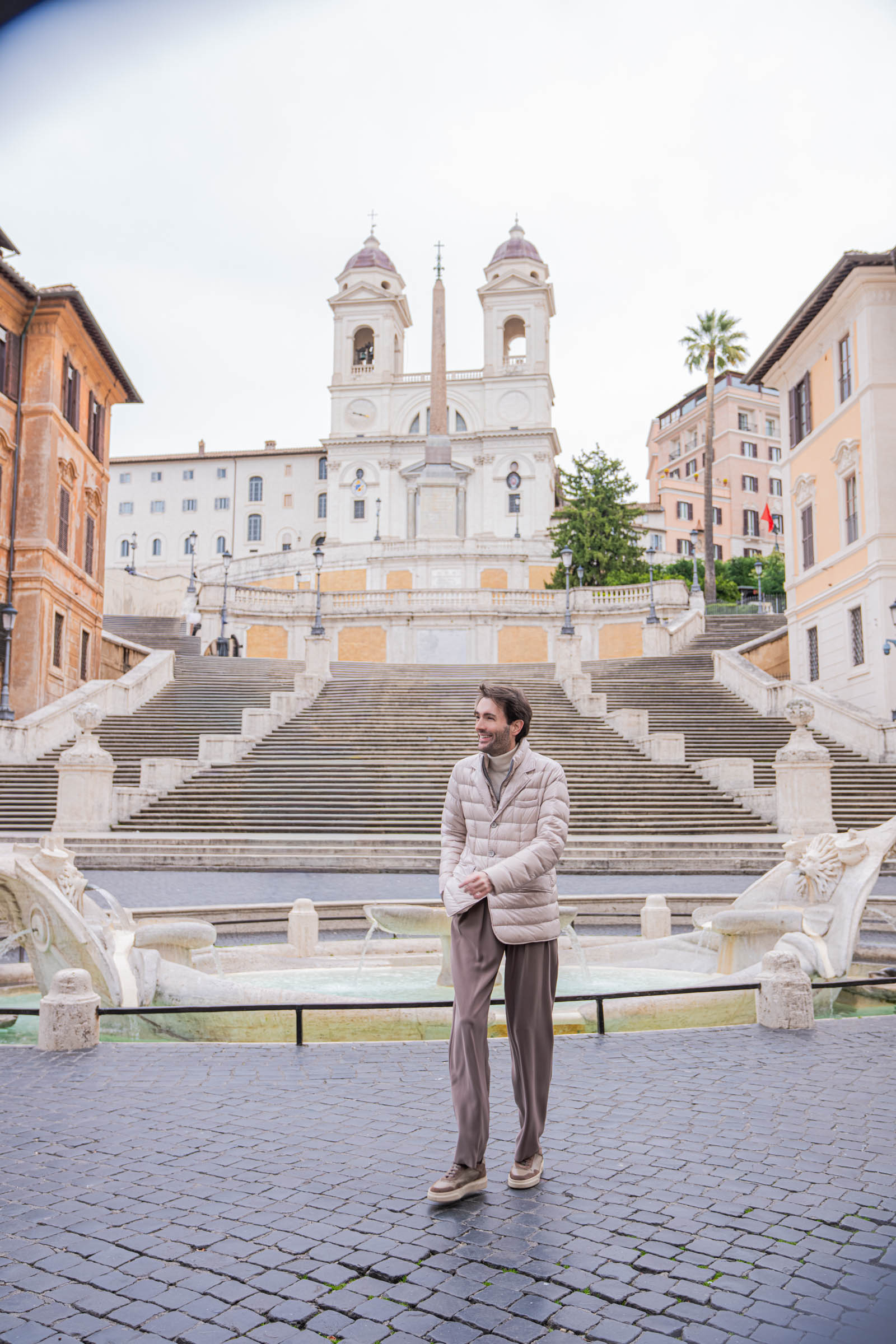 Rim je grad koji vam dozvoljava da budete onaj ko zaista jeste. Nema potrebe za pretvaranjem ni za forsiranjem. Upravo ta sloboda čini ga savršenom modnom pistom koja odiše elegancijom, bez napora i bez potrebe da se dokazuje. Rano jutro na Piazza di Spagna, pre nego što se pojave turisti, pruža retku privilegiju, stepenice samo za vas i vaše misli.