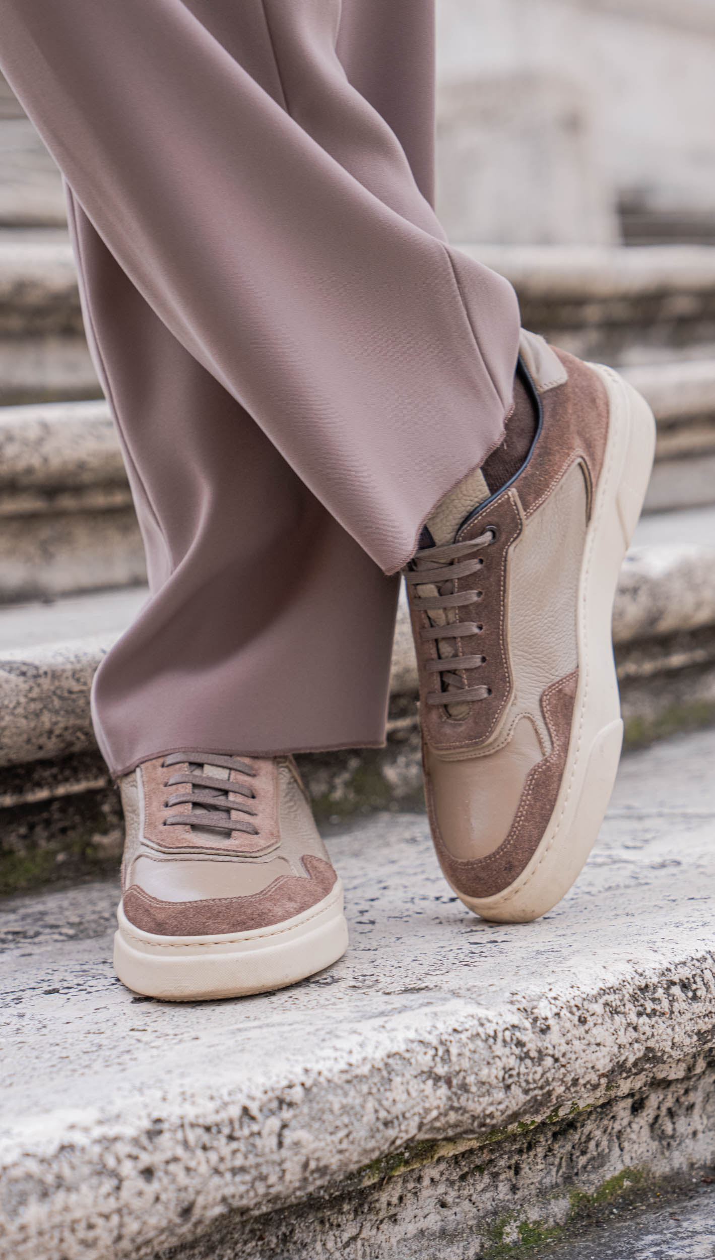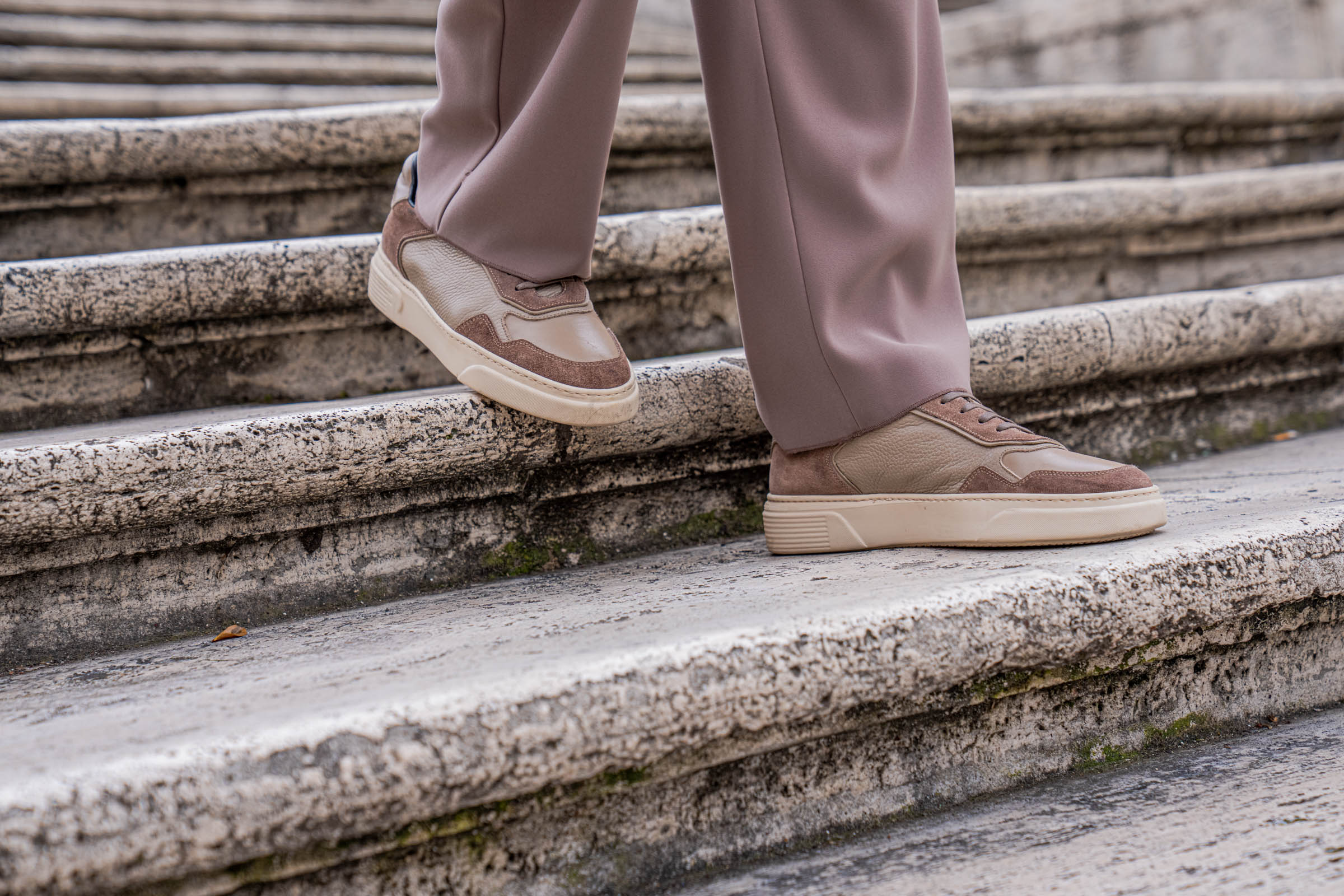 Model koji nosim savršeno ilustruje filozofiju ovog brenda. Gornji deo kombinuje zrnatu kožu i prevrnuti materijal u bež i braon tonovima, dok beli đon pruža udobnost za hodanje po rimskoj kaldrmi i stepenicama od travertina. Svaka cipela se pravi od početka do kraja u fabrici u Parabijagu, korišćenjem tehnika koje se prenose sa kolena na koleno. Za pedeseti rođendan kompanije 2003. godine, Italijanska pošta je izdala komemorativnu poštansku marku, priznanje koje govori o kulturnom značaju ovog brenda za celokupnu Italiju.