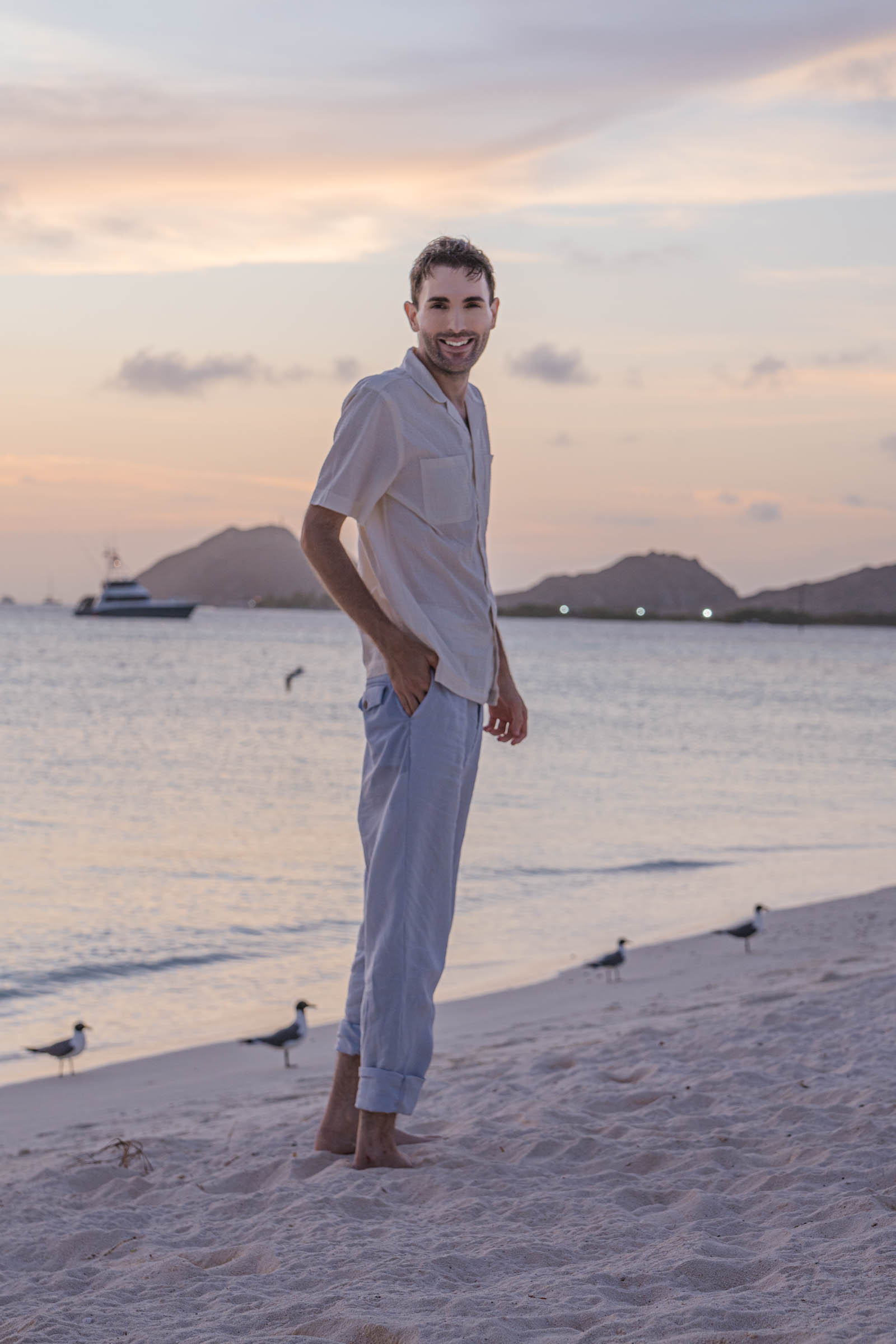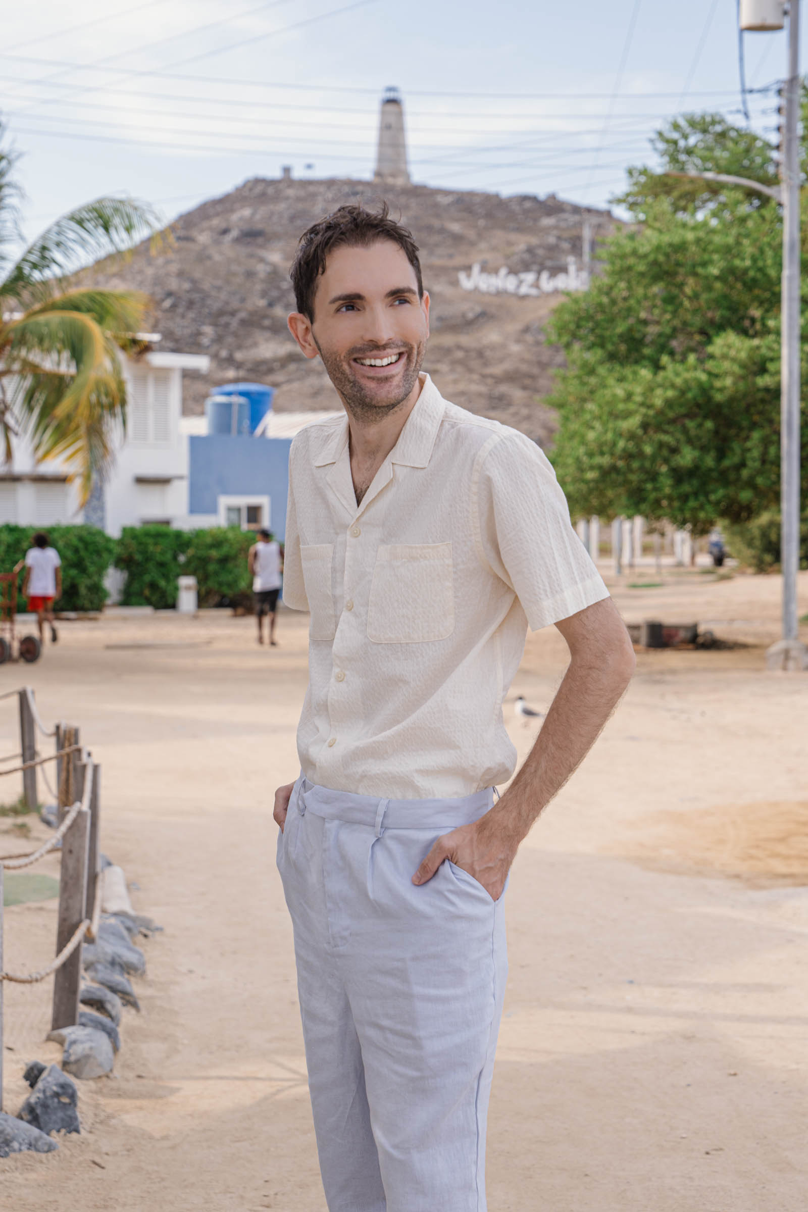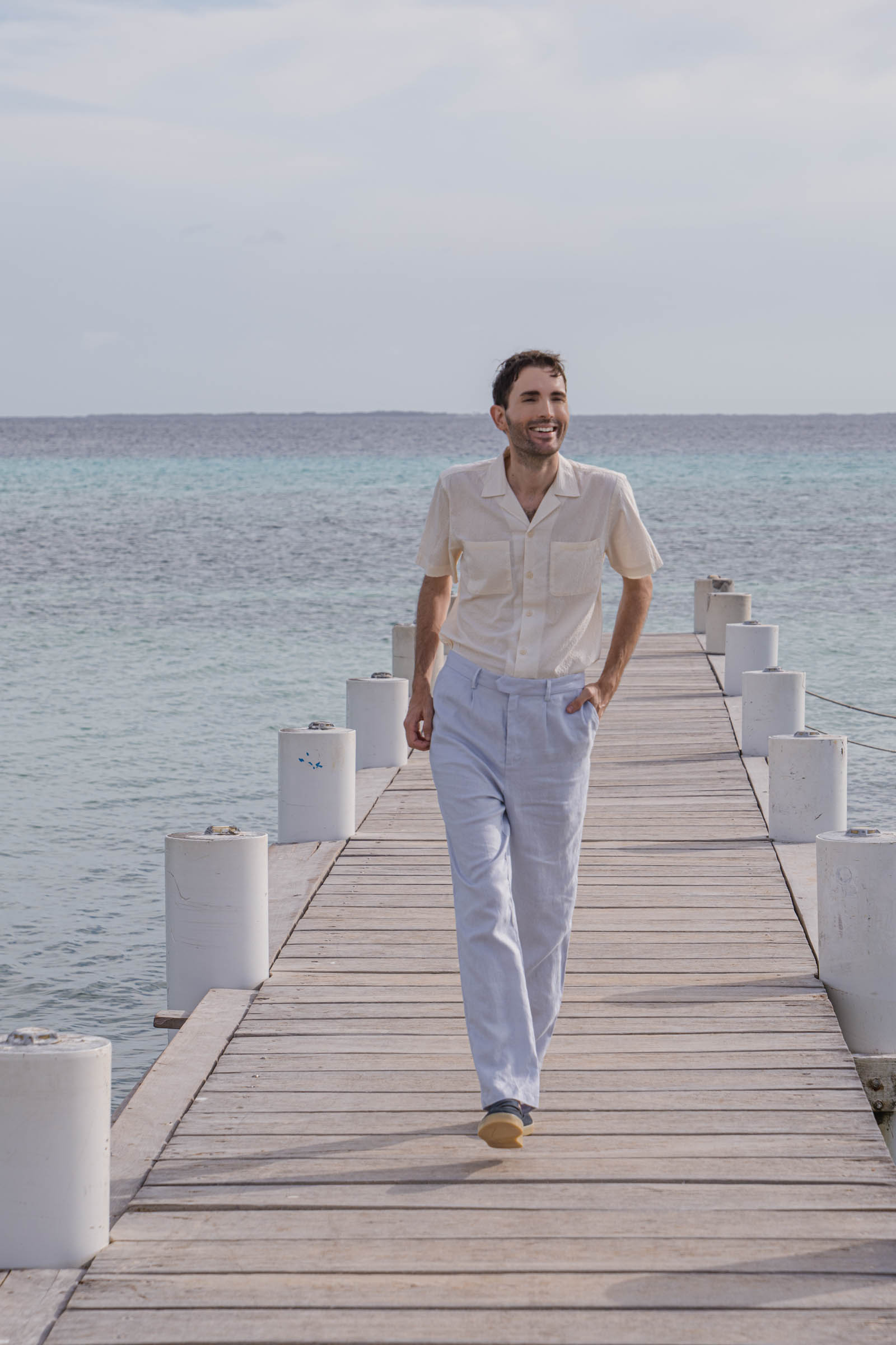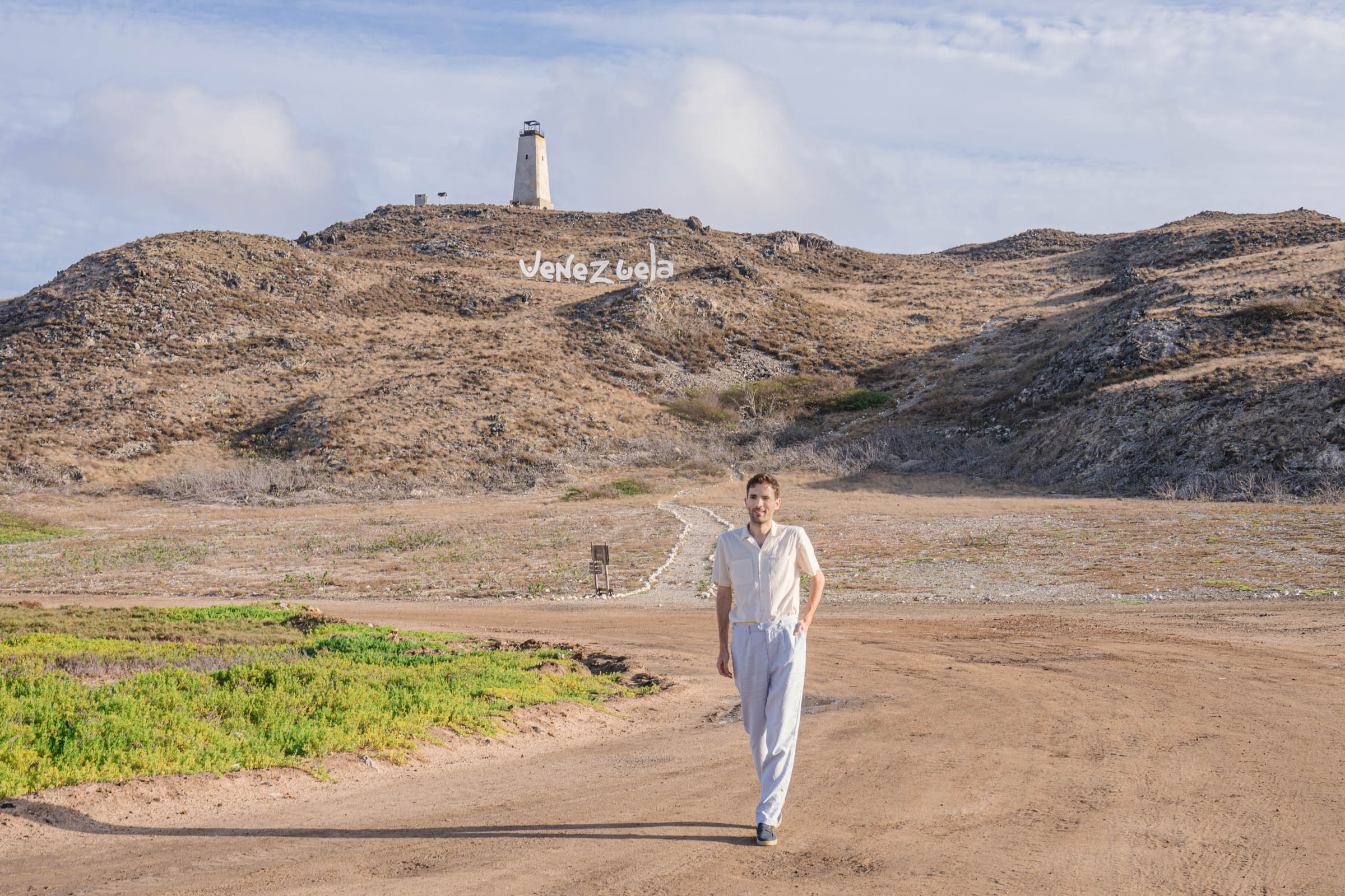 U prirodnom okruženju Los Roques, ova palete dobija dodatno značenje. Moje neutralne nijanse nisu se nadmetale sa pejzažem. Tirkizna voda, plavo nebo, belo kamenje, suva bež trava, prosto svi ovi elementi su stvarali savršenu harmoniju sa onim što sam nosio na sebi. Fotografije govore više od reči, outfit se stopio sa prirodom, ne odskače od nje.