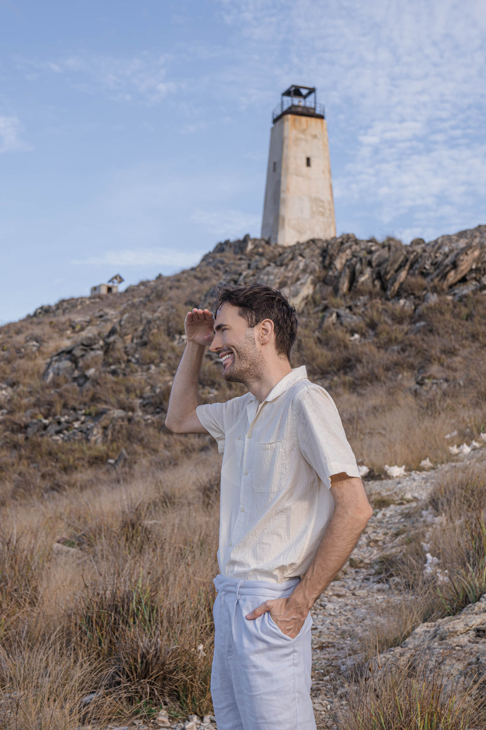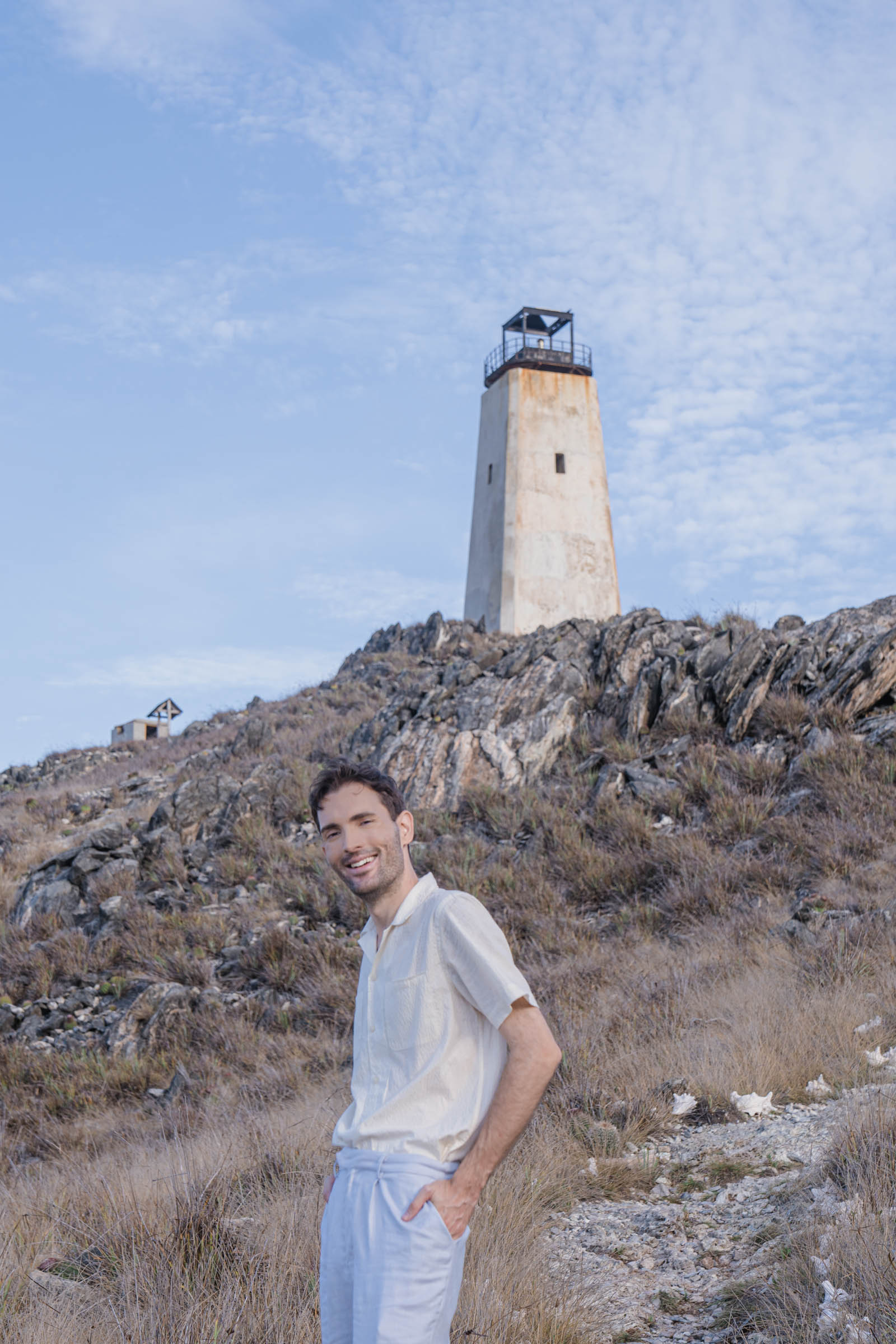 Dok sam se penjao ka svetioniku, jednom od simbola Gran Roque, razmišljao sam o tome kako destinacija i odeća mogu biti u savršenoj harmoniji. Svetionik, izgrađen još u doba holandske kolonizacije, stoji na vrhu kamenitog brda kao stražar koji gleda na beskonačno more. Put do njega nije lak zbog kamenja, suve trave, nestabilno tlo pod nogama. Ali pogled sa vrha nagrađuje svakog ko se usudi na ovaj uspon.