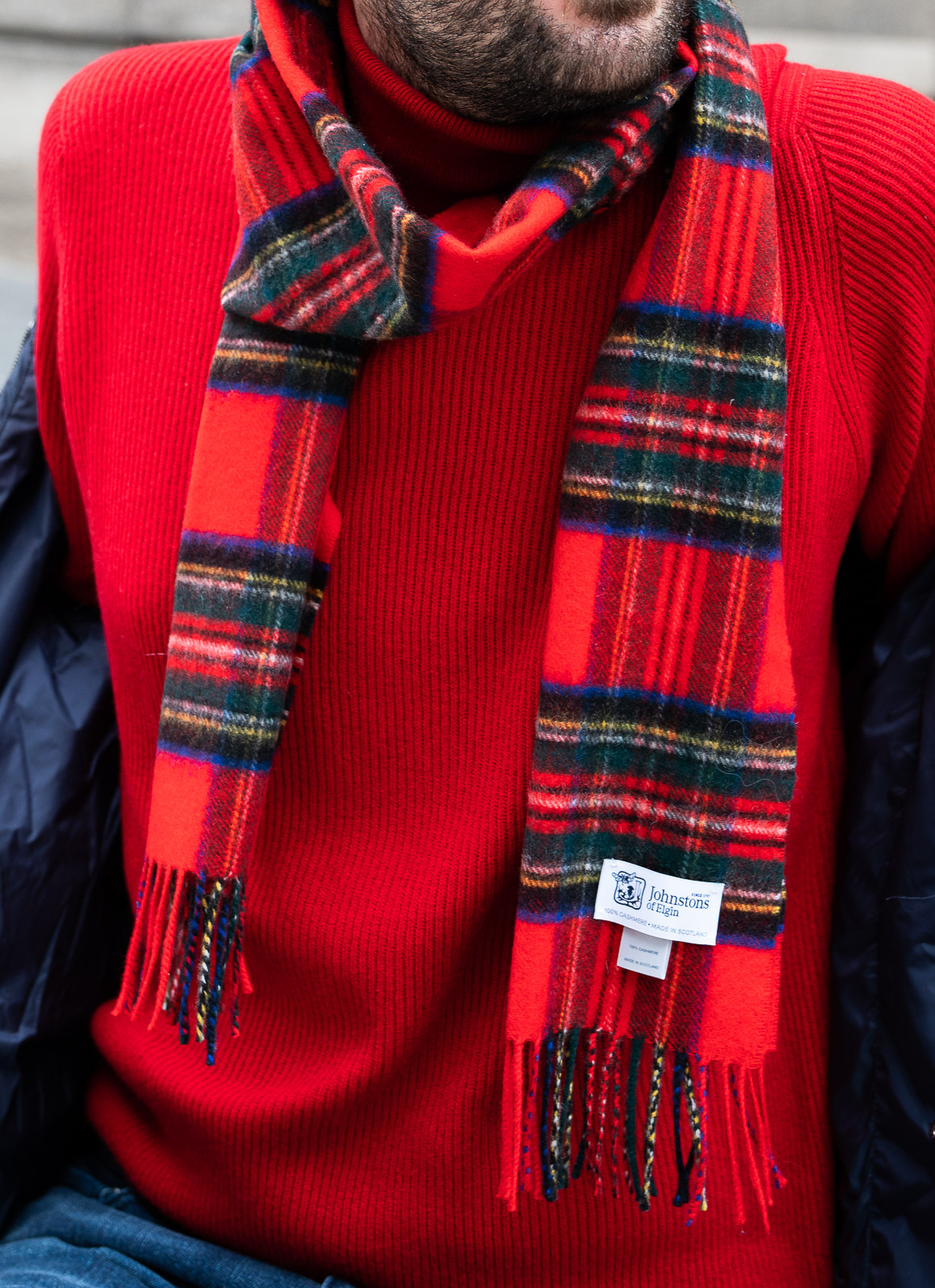 Svi “mekani” modni detalji su poklon od mojih dragih prijatelja iz Škotske – Johnstons of Elgin. Rolku ste imali priliku da vidite na ulicama Berlina u jednom od postova krajem prošle godine, ali šal je novi detalj koji predstavlja čuveni škotski print po kojem je ova izuzetna zemlja poznata.