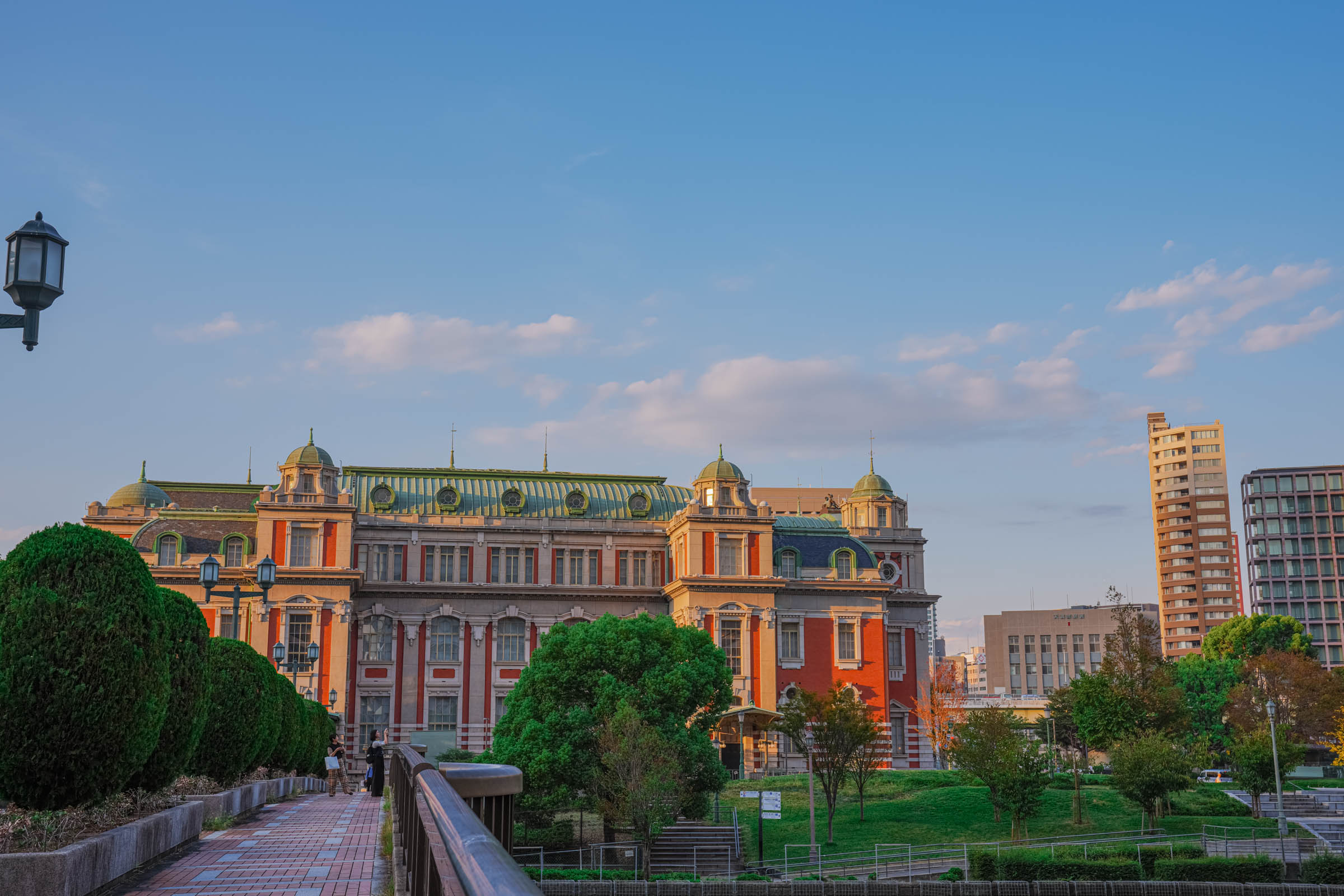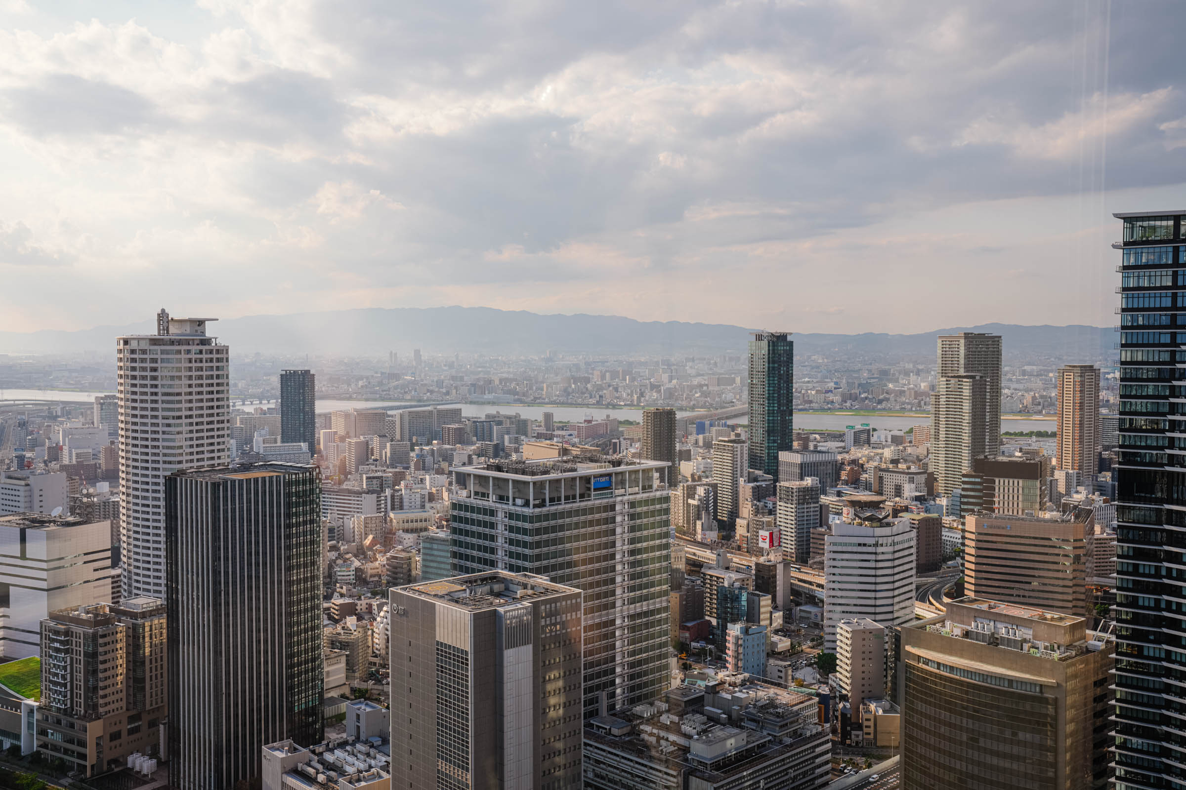 Abeno Harukas je druga najviša zgrada u Japanu sa 300 metara visine. Osmatračnica nudi zadivljujuće poglede, posebno u vreme zalaska sunca. Za 1.500 jena (oko 10 dolara), možete uživati u piću sa terase na 60. spratu dok upijate prizor. Umeda Skaj Building je još jedan impresivni neboder sa osmatračnicom i Plutajućim vrtom koji povezuje dva tornja. Za panoramski pogled na grad, Ferris točak Hep Five u živahnoj četvrti Umeda nudi šarenilo gondola i nezaboravan pogled na gradski horizont, posebno spektakularno u vreme zalaska sunca ili nakon što padne mrak.