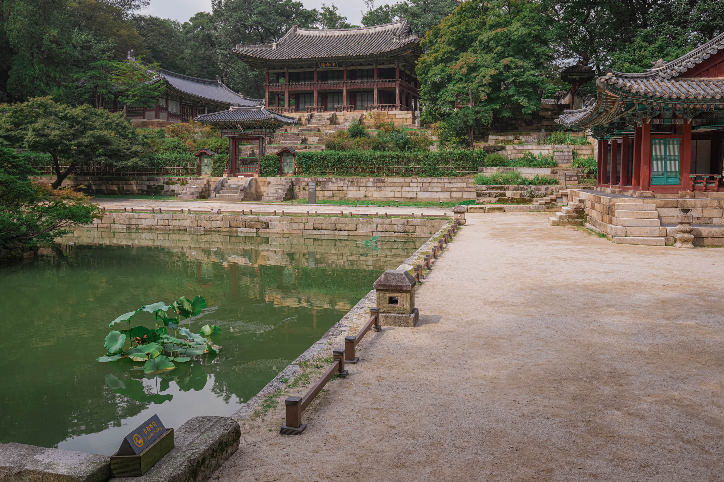 Ono što čini Changdeokgung zaista posebnim jeste Tajni vrt, poznat i kao Huwon ili Biwon. Ovaj vrt zauzima gotovo polovinu ukupnog prostora palate, preko 78 hektara i predstavlja remek-delo korejskog pejzažnog dizajna.